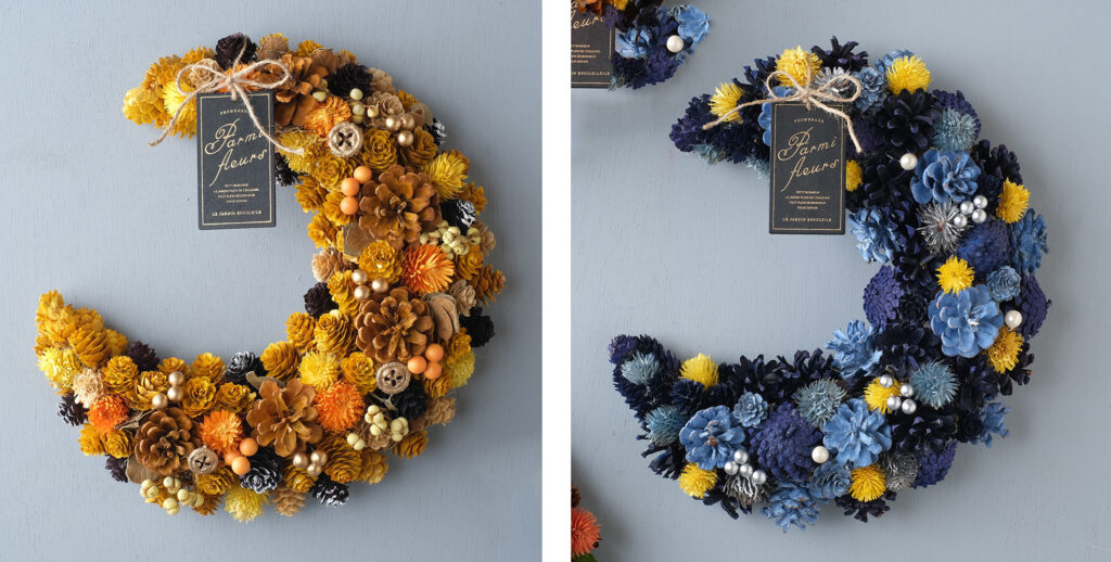 三日月リースでは、秋の彩りと、夜長をイメージした新商品が登場。 芸術的なシーンを演出します。