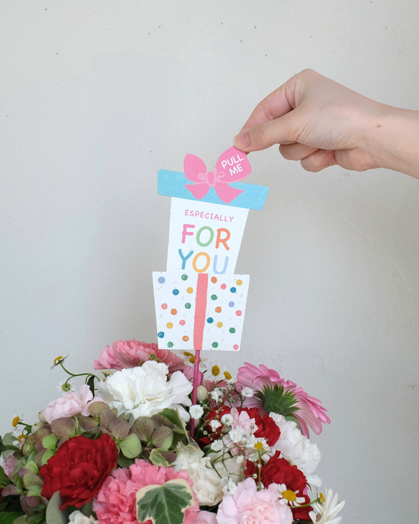 お花を受け取った人が驚いて、思わず笑顔になるようなピック。