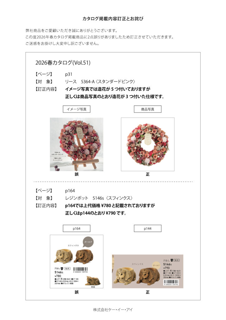 2026年通年カタログの誤表記につきまして